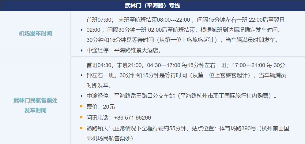 最新杭州机场大巴时刻表: