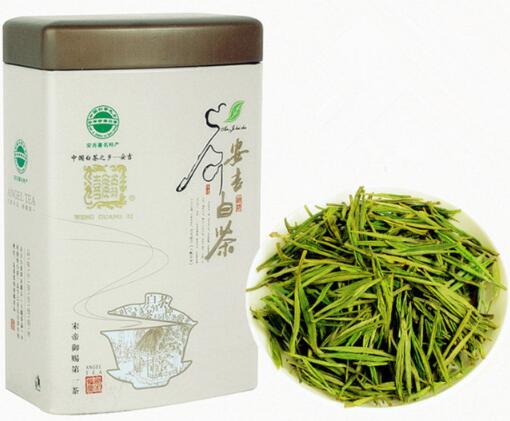产品名称:安吉白茶产品产地:浙江省湖州安吉产品特性:外形细秀,形如凤羽,色如玉霜,光亮油润,内质香气鲜爽馥郁,独具甘草味,汤色鹅黄,清澈明亮,叶底自然张开,叶肉玉白,叶脉翠绿。产品成分:白毫银针菁华、儿茶素、白茶酮、天然植物复方精油等成份。产品功效:降血脂、降血压、抗疲劳、防衰老,润肠通便,调理肠胃、去腹胀、醒酒、通气的功效。产品简介:茶中之王——安吉白茶是茶中的珍稀茗品,全国独一无二。
